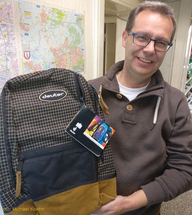 Ein besonderer Dank geht an Fahrradhändler Jan Köhler aus der Bahnhofstraße 69, der den edlen und praktischen Rucksack der Firma DEUTER und drei schicke, reflektierende Helme von KED gespendet hat.
