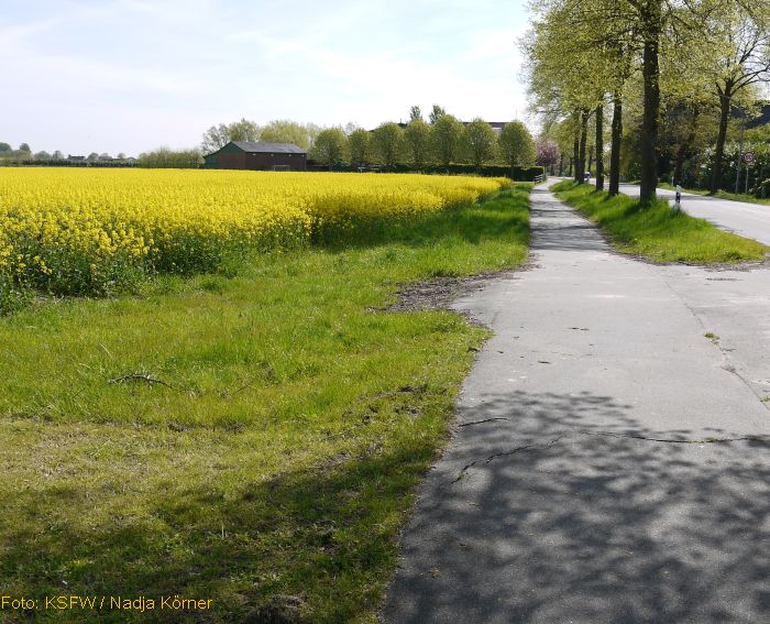 Zurück geht es über Holm über den gut ausgebauten, separaten Radweg an der Hauptstraße entlang nach Wedel.
