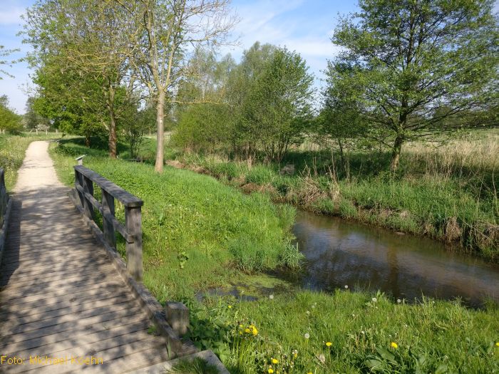 Wenn man die Holzbrücke über die Au erreicht hat, erstreckt sich geradeaus die Wassererlebniszone unserer Wedeler Au (Bild 2). Hier gibt es nicht nur für die Kleinen viel zu entdecken und zu lernen. Mit Glück sieht man Fische und anderes Getier.